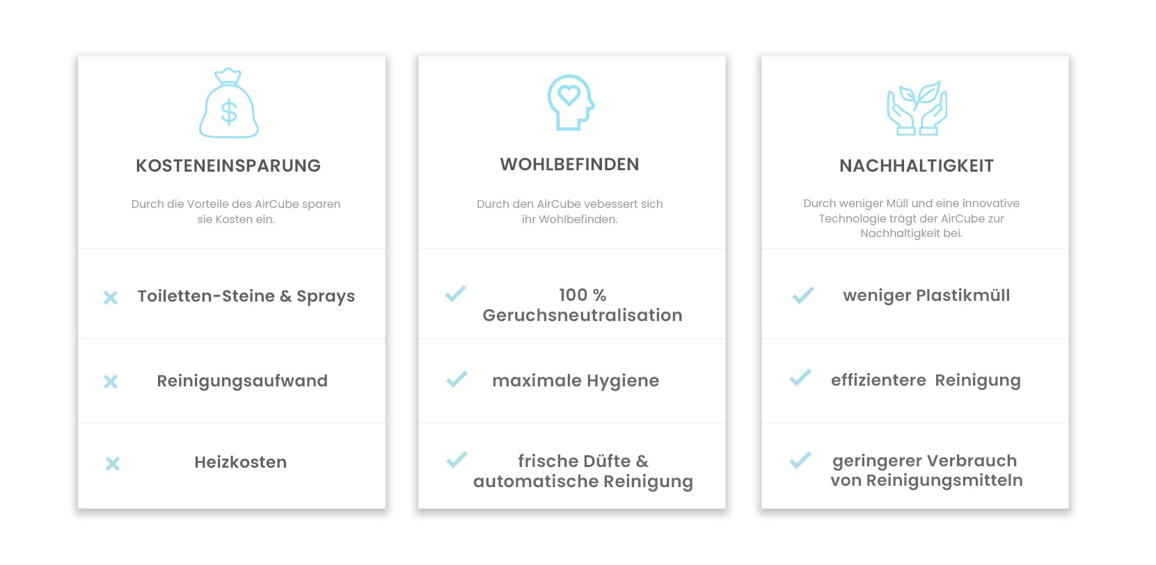 Eliminieren Sie mit dem AIR CUBE 100% aller WC-Gerüche und genießen Sie ein hygienisch sauberes WC.